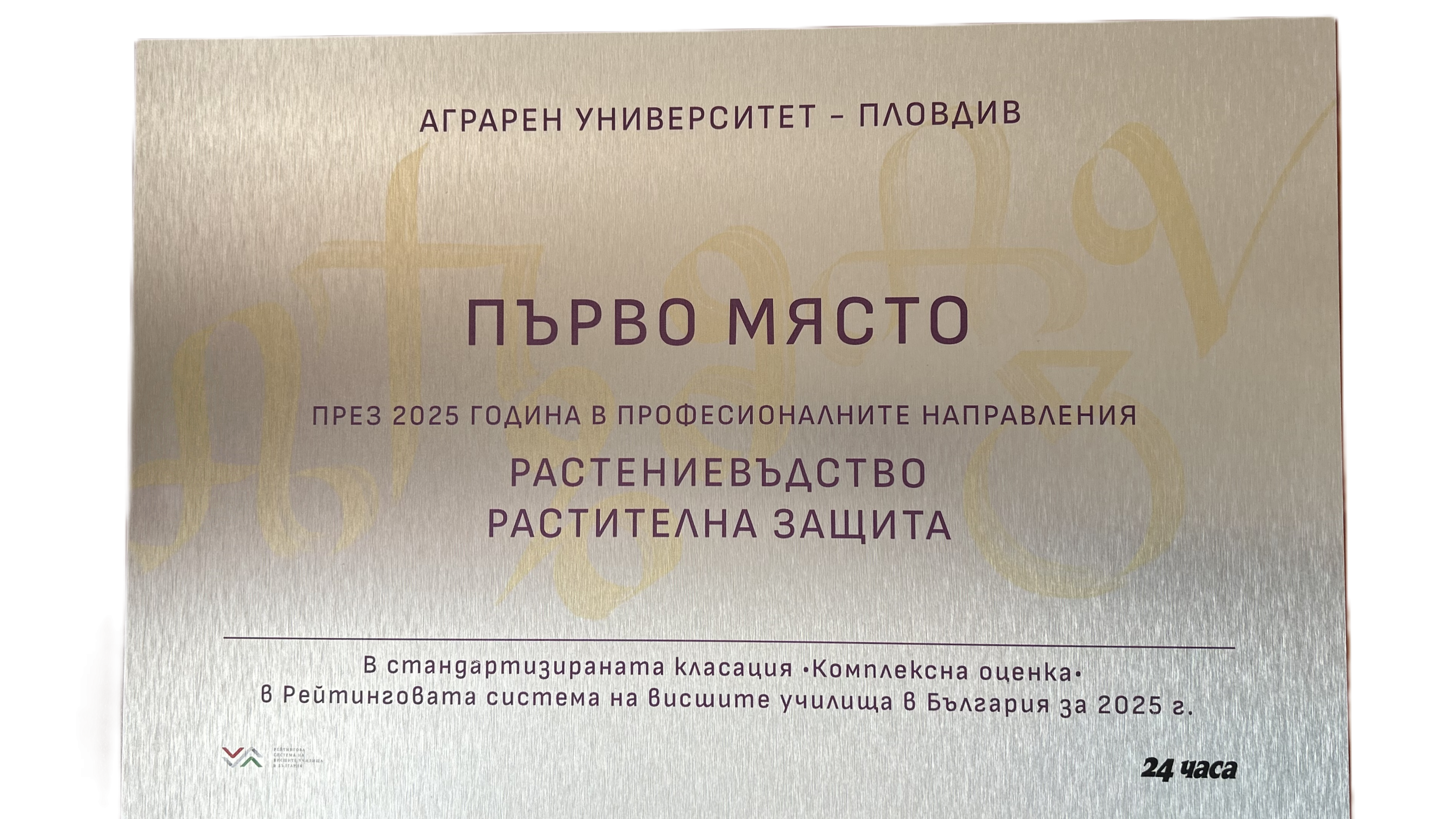 Аграрният университет отново е национален първенец в направленията „Растениевъдство“ и „Растителна защита“.