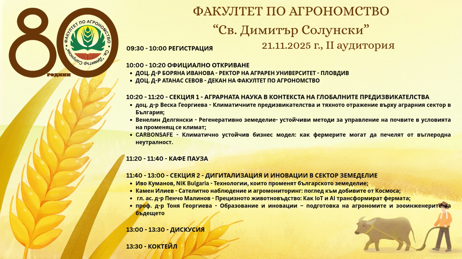 • Кръгла маса на тема: „Устойчиво земеделие в ерата на климатичните предизвикателства и дигиталните иновации“
