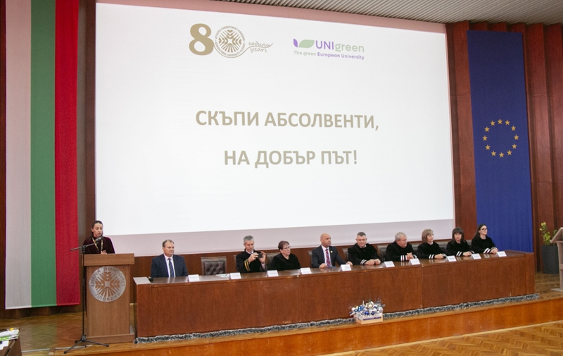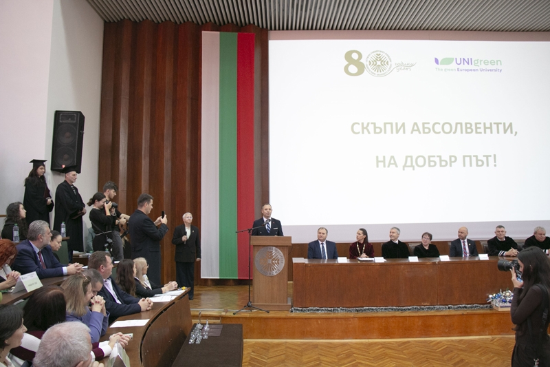 Под знака на 80-годишния юбилей на Аграрния университет – Пловдив на 11 декември в Аулата на университета се състоя тържествена церемония по повод дипломирането на абсолвентите от Випуск 2025 г.