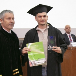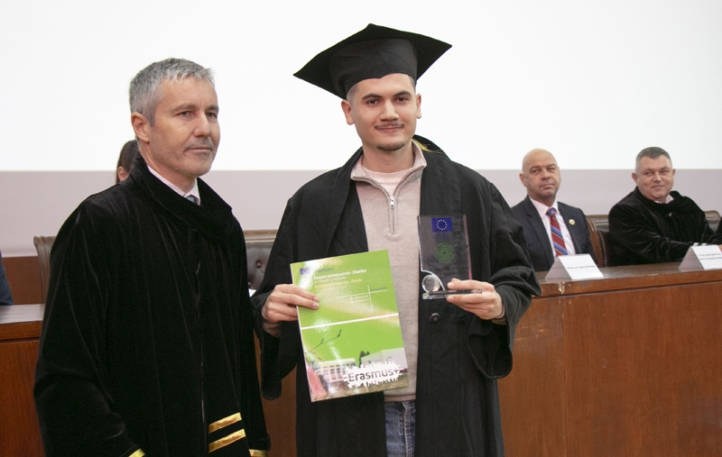 „Най-успешен Еразъм+ студент на Випуск 2025” е Иван Дулев от специалност „Аграрен туризъм“, който получи кристален плакет от проф. д-р Димо Атанасов, зам.-ректор по научна и международна дейност и институционален координатор по програма Еразъм+.