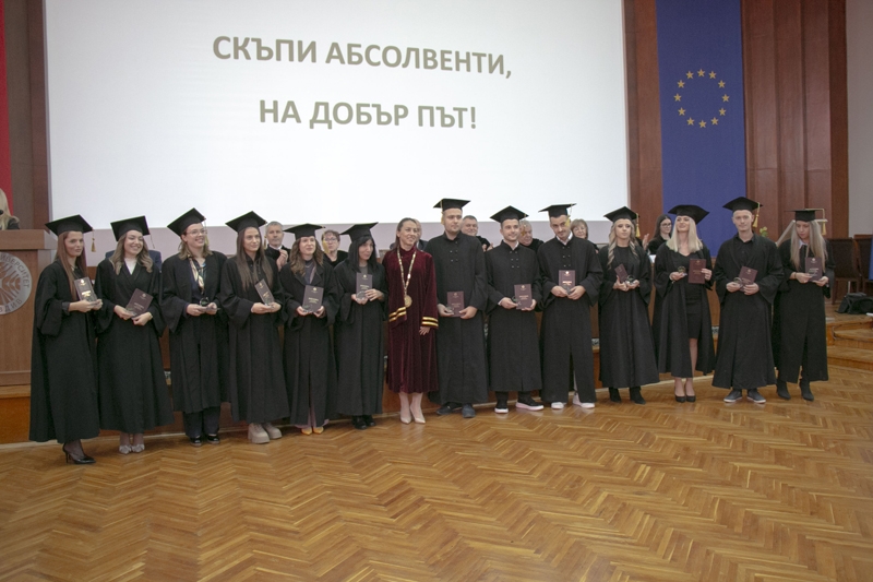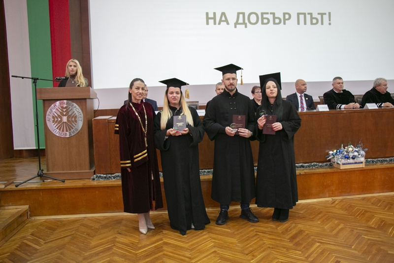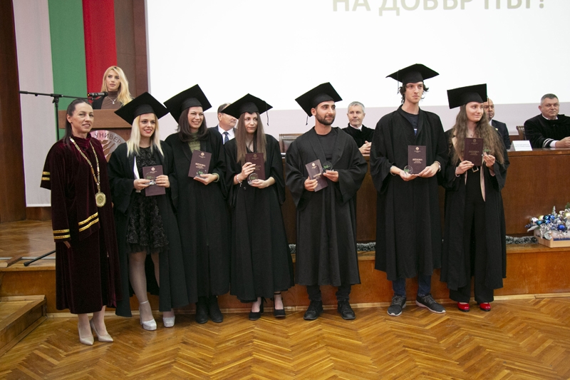 Ректорът доц. д-р Боряна Иванова отчете високите резултати на дипломиралите се 583 студенти, от които 323 бакалаври и 260 магистри.