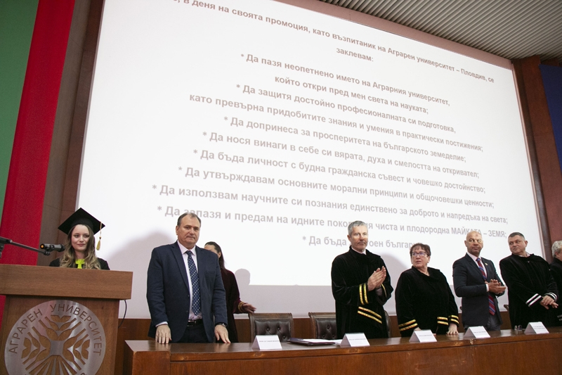 Доц. Иванова допълни: „Не забравяйте, че истинският успех се гради не само върху знания, но и върху етика, доброта и отговорност. Продължавайте да учите, да търсите нови решения и да следвате своя път с увереност. Вратите на нашия университет остават отворени за вас – за бъдещи срещи, идеи и партньорства. Вие винаги ще бъдете част от голямото семейство на Аграния универститет – Пловдив.“