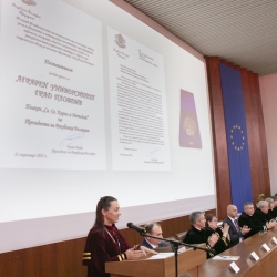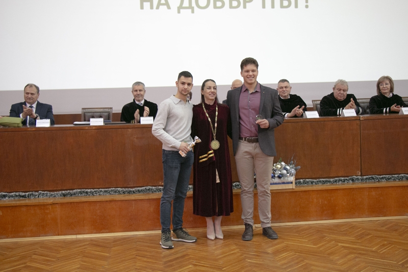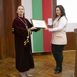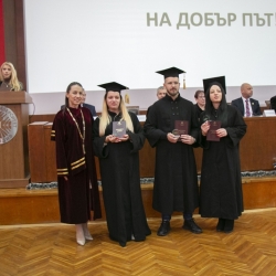 Доц. д-р Боряна Иванова връчи отличията и дипломите на първенците и абсолвентите бакалаври с успех над 5.50 от курса на следване и успех от държавните изпити отличен 6.00.