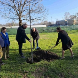След приключване на церемонията ректорът на АУ доц. д-р Боряна Иванова и проф. д-р Владислав Попов засадиха дръвче в университетския парк, за да се спази традицията на европейския алианс UNIgreen, чийто партньор е Аграрният университет.