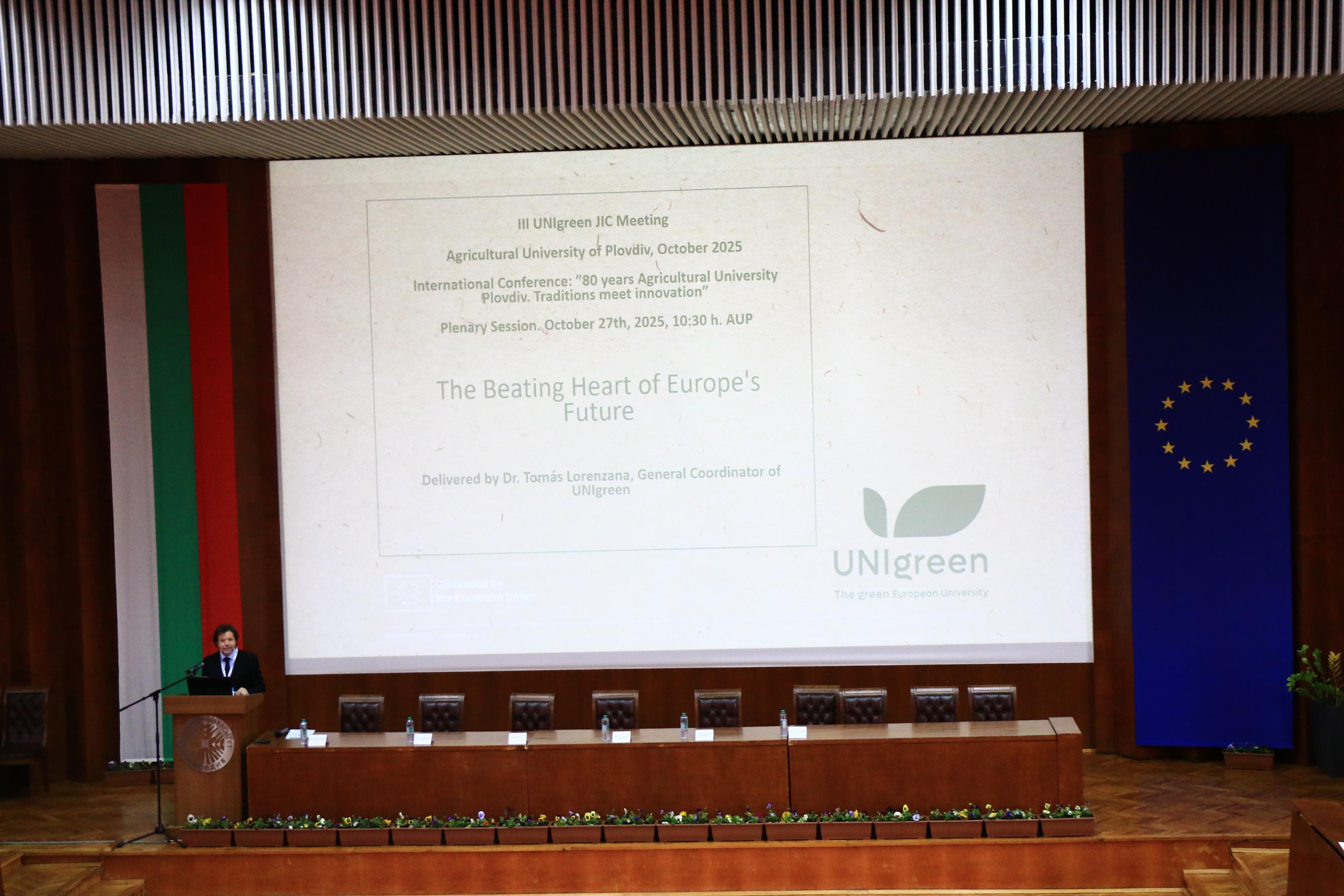 Пленарни доклади представиха доц. д-р Младен Младенов, изпълнителен директор на Национална служба за съвети в земеделието към МЗХ, проф. д-р Ялчин Кая от Тракийски университет – Одрин, Турция, доц. д-р Томас Лорензана, главен координатор на UNIgreen и доц. д-р Звонимир Прпич от Университета на Загреб, Хърватия.