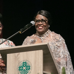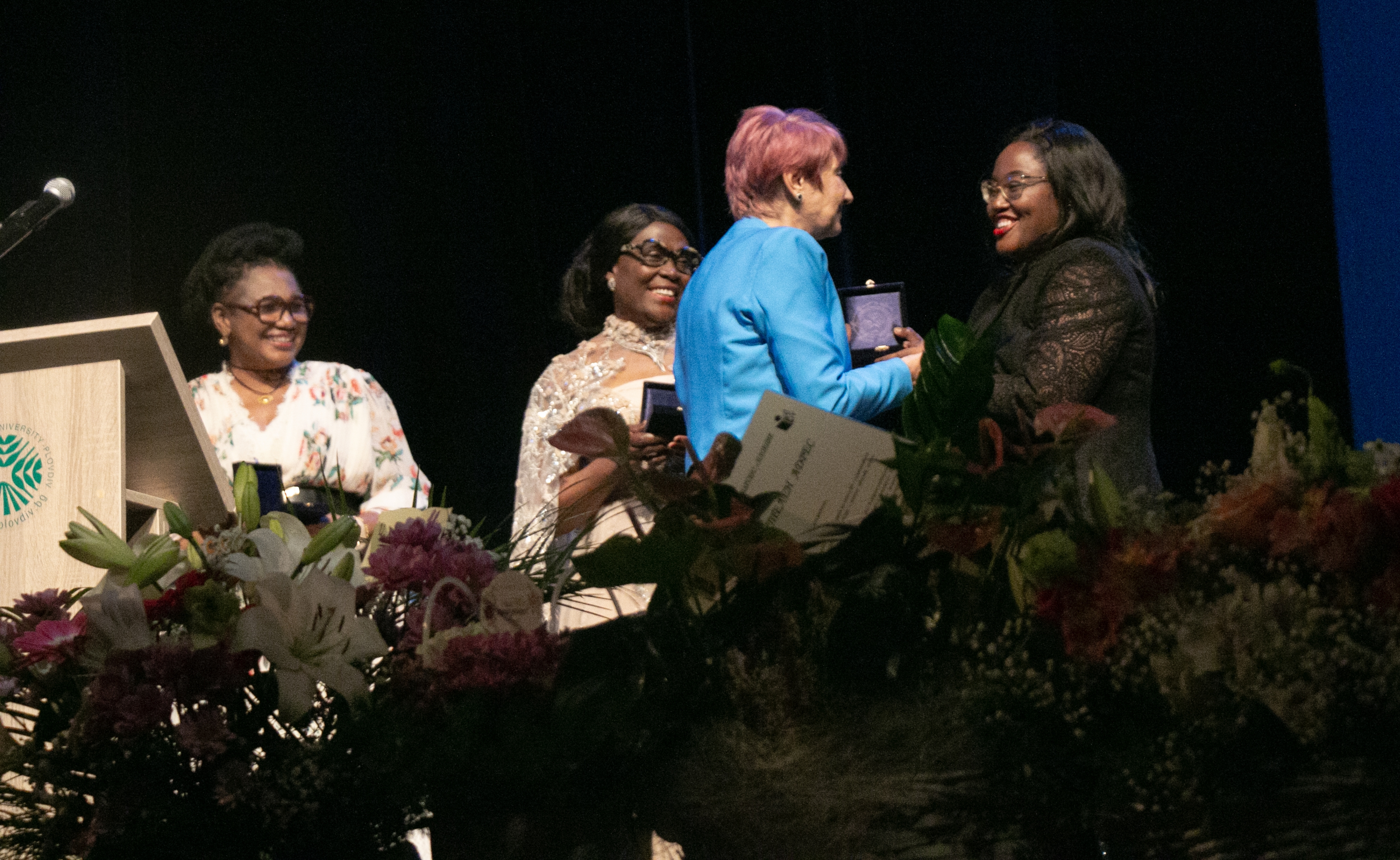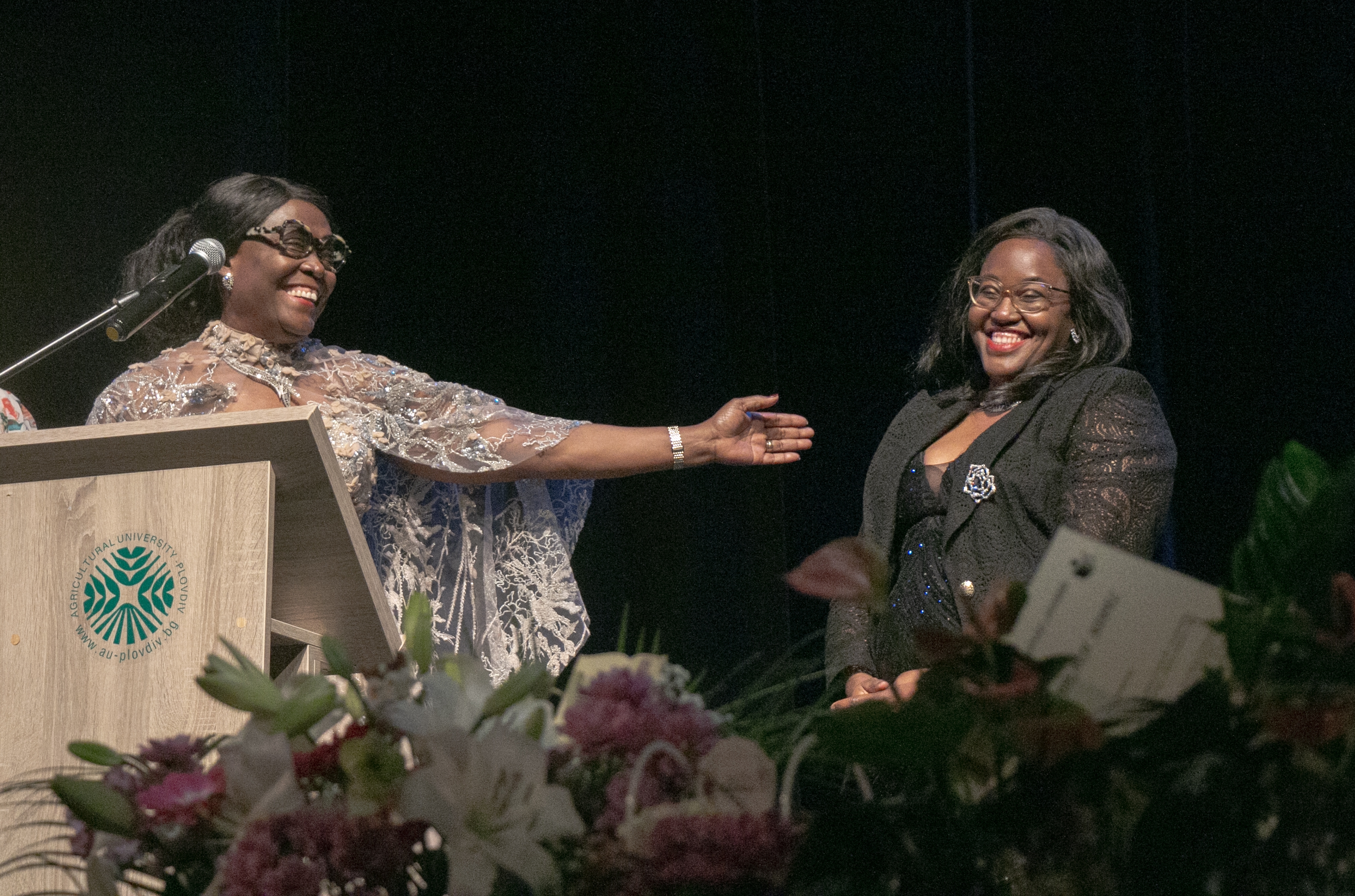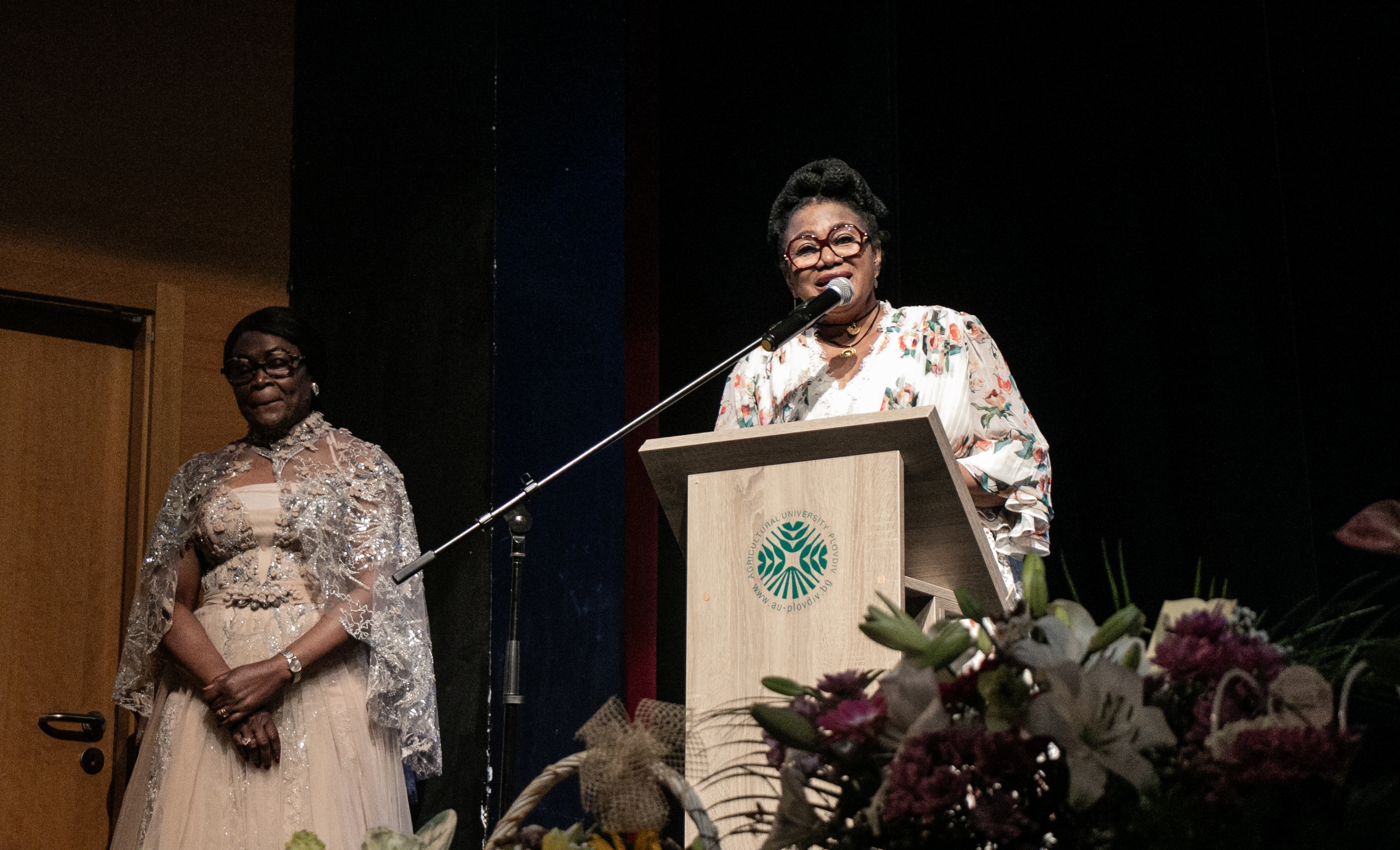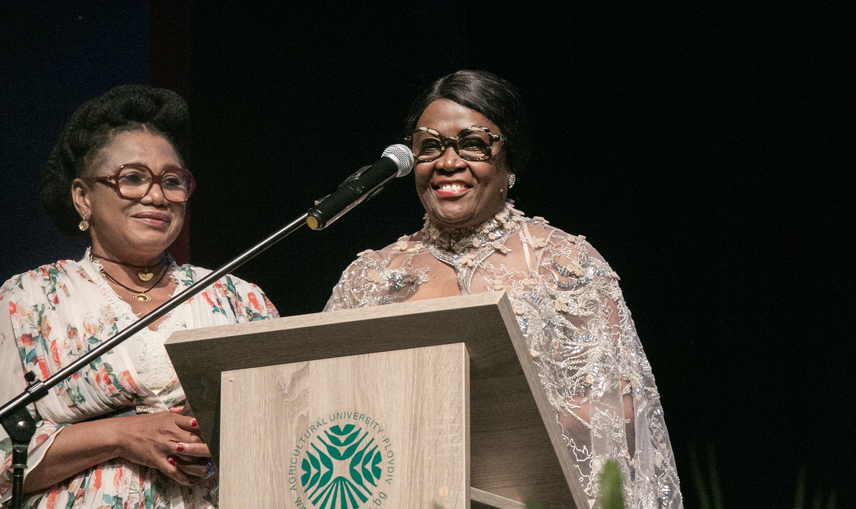 Чуждестранните възпитаници на АУ и настоящи министри на Република Конго – г-жа Ирен Мари Сесил Мбуку Кимбаца и д-р Розали Матондо също бяха отличени с юбилейни плакети.