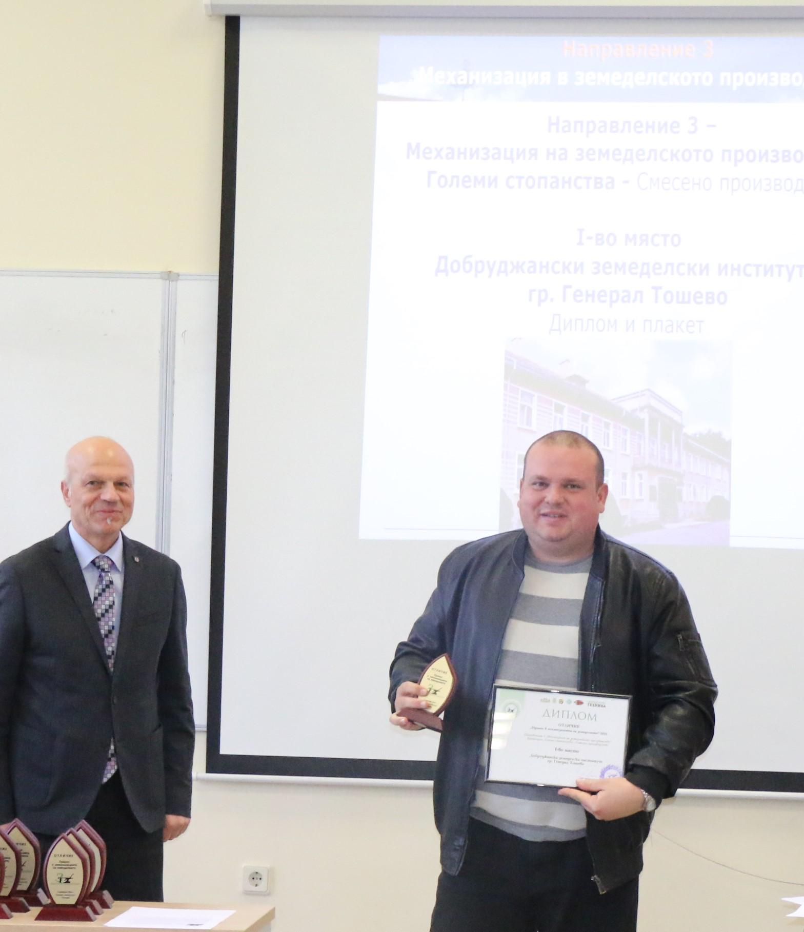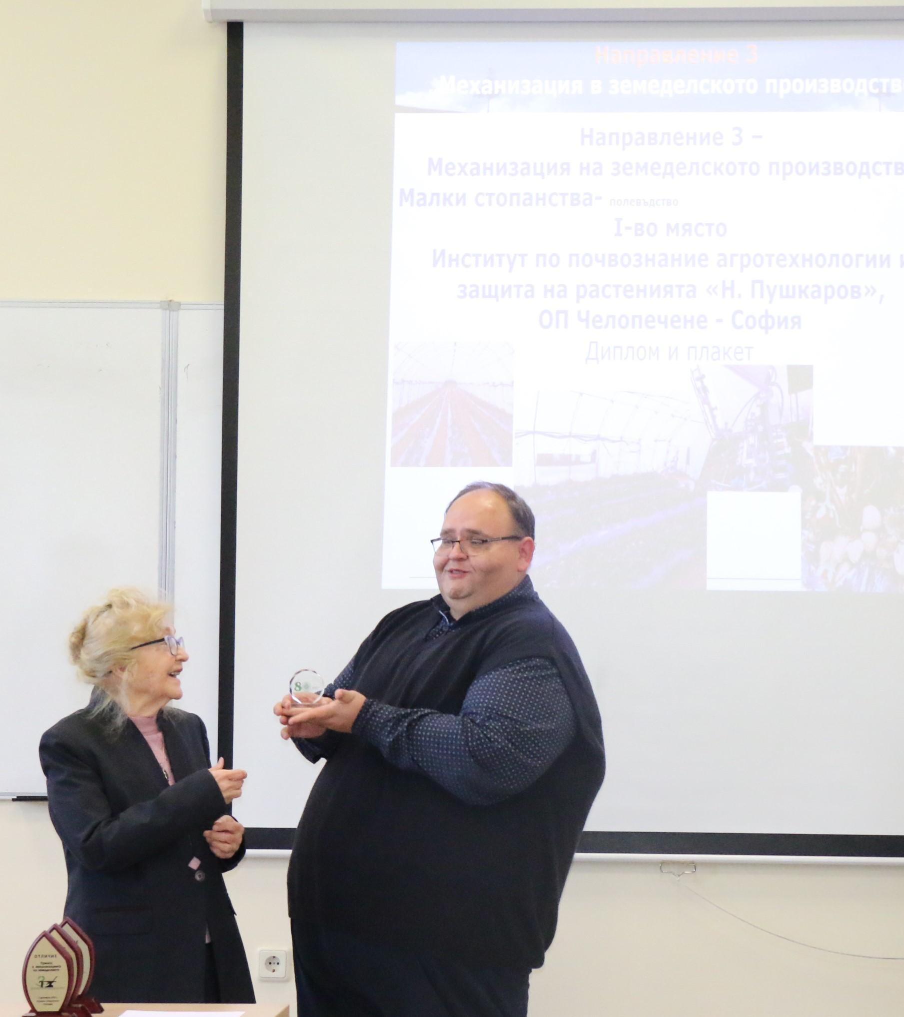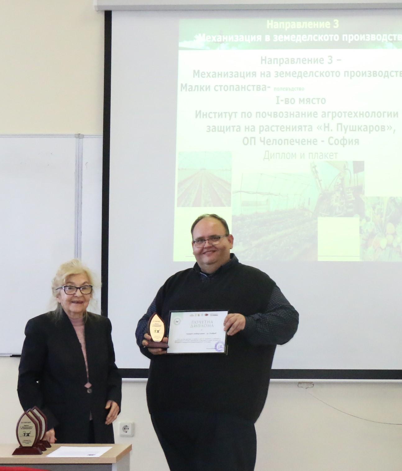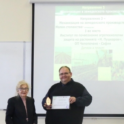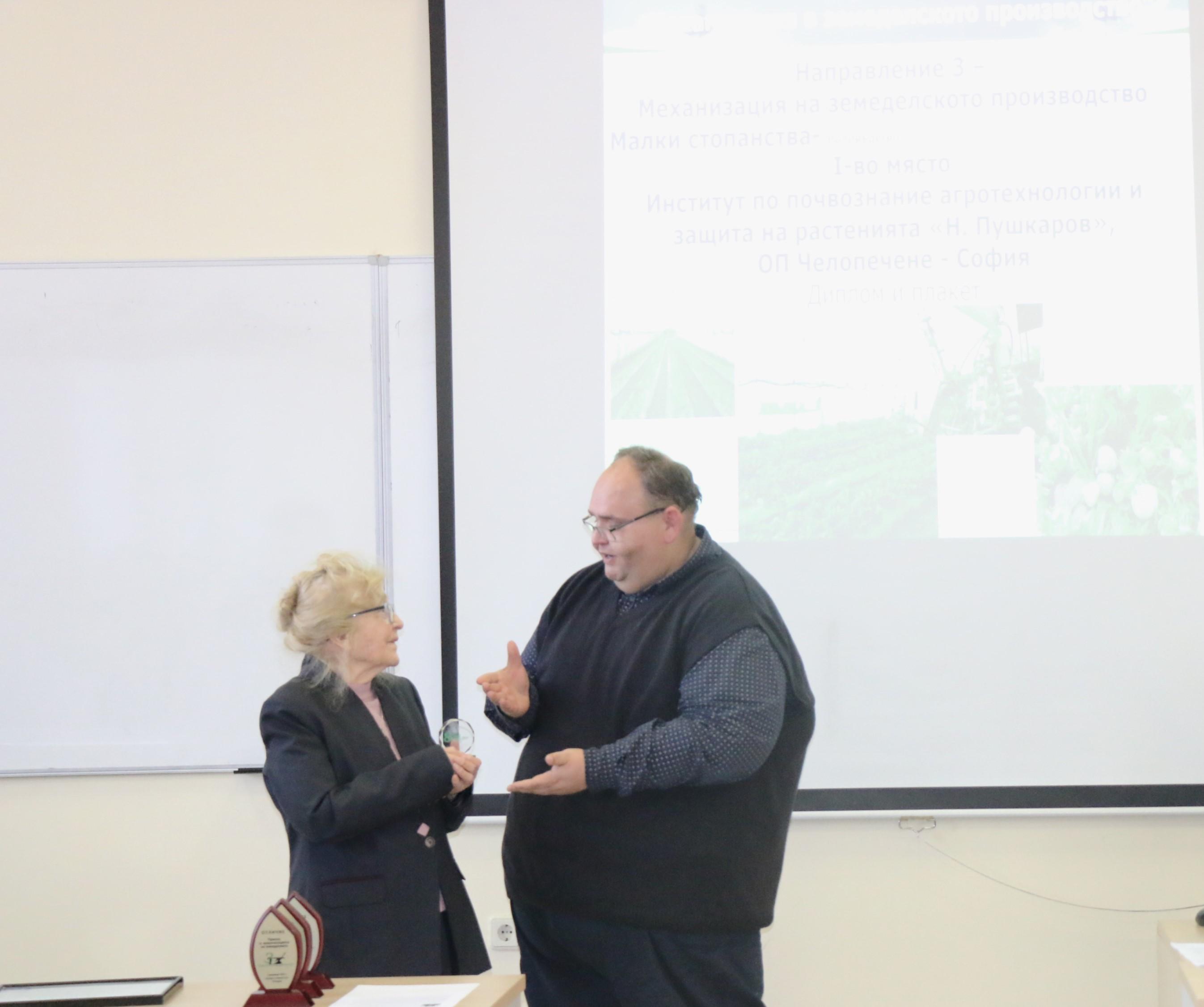 Проф. д-р инж. Георги Костадинов от Института по почвознание,агротехнологии и защита на растенията „Никола Пушкаров, който бе председател на комисията за оценка на участниците в Отличието, обяви резултатите от конкурса.