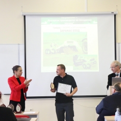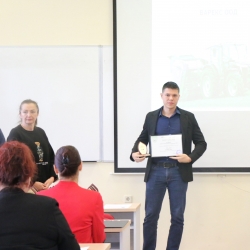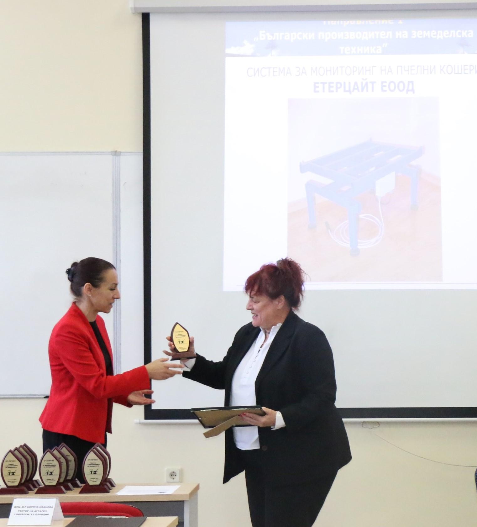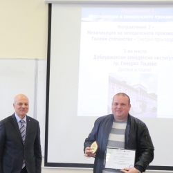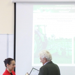От името на Академичната общност на Аграрния университет – Пловдив доц. д-р Манол Даллев връчи на доц. д-р инж. Милка Бобева плакет за изключителния й принос за реализирането на конкурса „Принос в механизацията на земеделието” и за утвърждаването му като значимо събитие в аграрния сектор.