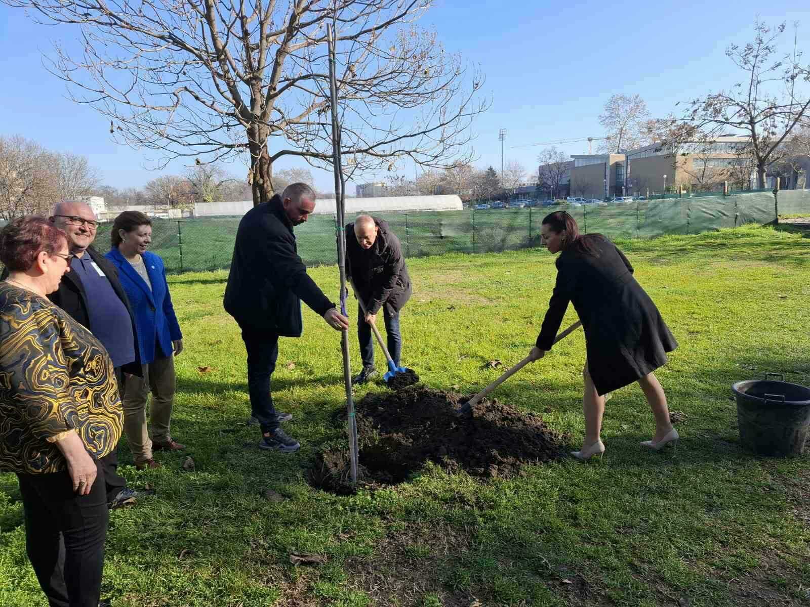 След приключване на церемонията ректорът на АУ доц. д-р Боряна Иванова и проф. д-р Владислав Попов засадиха дръвче в университетския парк, за да се спази традицията на европейския алианс UNIgreen, чийто партньор е Аграрният университет.