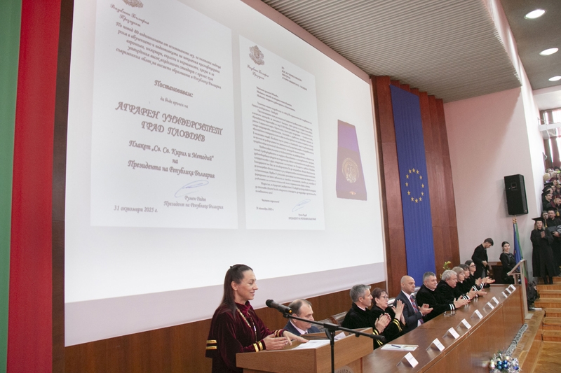 Под знака на 80-годишния юбилей на Аграрния университет – Пловдив на 11 декември в Аулата на университета се състоя тържествена церемония по повод дипломирането на абсолвентите от Випуск 2025 г.