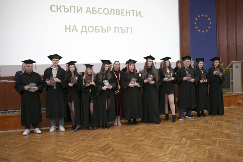Ректорът доц. д-р Боряна Иванова отчете високите резултати на дипломиралите се 583 студенти, от които 323 бакалаври и 260 магистри.