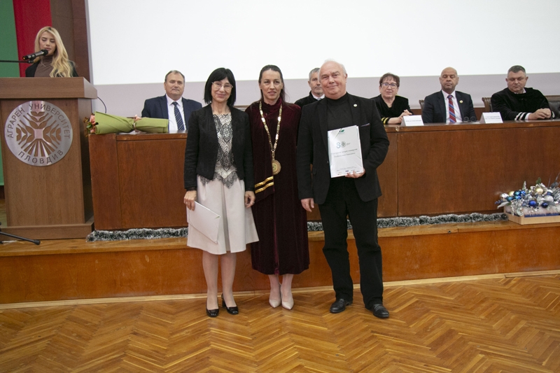 За дългогодишен принос към развитието на Аграрния университет – Пловдив и аграрната наука в България почетни грамоти получиха преподавателите проф. д-р Вили Харизанова, проф. д-р Радослав Андреев, доц. д-р Младен Найденов, доц. д-р Стефан Видев.
